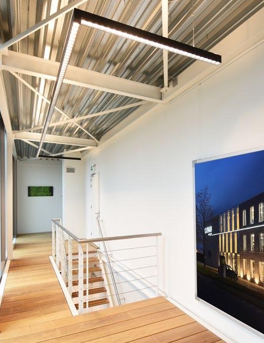 Dit Orion armatuur heeft 30% uplight en 70% downlight. Dit geeft een mooi ruimtelijk effect. Dankzij de Orion optiek is het armatuur niet verblindend. De armaturen zijn individueel te gebruiken, bijvoorbeeld als werkplekverlichting boven een bureau, n koppelbaar. Er zijn L, T en + en rechte koppelstukken verkrijgbaar (in zwart en wit). De bedrading om de armaturen te koppelen is voorbereid, dus plug&play!