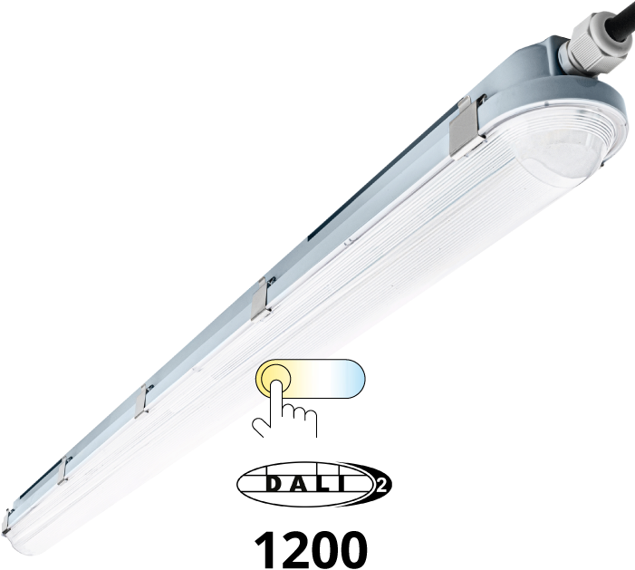 Eenvoudige gereedschapsloze montage dankzij prefab installatie kabels en wartels (M20). Beschikbaar in 60cm, 120cm en 150cm en lumen pakketten van 1250lm tot 10.200lm. LED-lichtbron heeft een verwachte levensduur van 100.000, waarmee substantieel wordt bespaard op onderhouds- en vervangingskosten. Standaard voorbereid met 5x2,5mm2 doorvoerbedrading, waarmee armaturen gekoppeld kunnen worden. Versies met DALI, Noodverlichting, bewegingssensoren, step-dim(hoog-laag), en voorzieningen voor de aansluiting van lichtmanagement systemen.