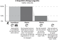 Het licht gaat, gedurende vooraf ingestelde tijdsduur automatisch aan en uit bij detectie.