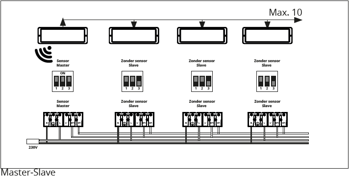 Rechthoek wand- of opbouwarmatuur met opalen prisma diffuser uit UV-gestabiliseerd polycarbonaat. Beschikbaar in 3 kleuren wit (RAL9003), zwart (RAL9004) en antraciet (RAL7016). Opbouwdiepte >77mm. Armatuurbehuizing uit UV-gestabiliseerd polycarbonaat vlamdovend. Armatuurlichtstroom via interne schuifschakelaar in te stellen tussen 295 en 570lm, aansluitvermogen 2,75W tot 5,00W multilumen (4-in-1), met lichtrendement tot 114 lm/W. Lichtkleur 3-in-1 (3-CCT) 2700K (extra warm wit)en 4000K (neutraal wit) instelbaar via schuifschakelaar. Versies met dimbare sensor (step-dim), beweging prioriteit , schemer- daglicht prioriteit. Modulair uit te breiden met master-slave. Algemene kleurweergave-index (CRI) Ra>80. Zeer stabiele binning MacAdam Ellipse =4 (SDCM). Gemiddelde levensduur L90 (tq 25C) = 50.000 uur volgens TM-21 extrapolatie, In-SITU temperatuurtest (ISTMT). Toelaatbare omgevingstemperatuur (ta): -20C ~+ 50C. Beschermklasse (EN 61140): II.Beschermklasse Ingress Protection (EN 60529): IP66, slagvastheid IEC 62262: IK10. Gloeidraadtest conform IEC 60695-2-11: 850C. Met elektronische transformator. Met 3-aderige aansluitklem voor bedrading tot 2,5mm2 vooraansluiting en doorlussen (loop-in-loop-out) van voeding. Geoptimaliseerd voor centraaldozen. Met zijdoorvoer 3x M20. Armaturen voldoen aan de fundamentele eisen van de van toepassing zijnde EU-richtlijnen en productveiligheidswet, zoals EMC, LvD en RoHs. Armaturen zijn voorzien van een CE-markering en zijn geregistreerd door SKG en opgenomen in het Politiekeurmerk Veilig Wonen register.