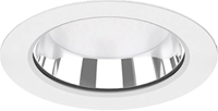 Ronde LED downlighter met aluminium reflector met klemveren. Met gesloten opalen diffusor vervaardigd uit PMMA, glazen afscherming en behuizing uit aluminium met vlakke plafondring ( Wit RAL9016 of Zwart RAL9005). Geschikt voor montage in plafonds met inbouwopeningen, lamellensystemen, systeemplafonds met verborgen en zichtbare draagprofielen. Geschikt voor inbouwopeningen van 125, 150 en 200 Inbouwdiepte =100mm. Armatuurlichtstroom 900 tot 3850lm, aansluitvermogen 9,00W tot 38,00W met lichtrendement van 108 lm/W. Versies met instelbare lumenstroom in vier standen (-OS/-UN). Beschikbaar in kleurtemperatuur (CCT) 3000K (warm wit) en 4000K (neutraal wit). Algemene kleurweergave-index (CRI) Ra >80. Zeer stabiele binning MacAdam Ellipse <6 (SDCM). Gemiddelde levensduur L80(tq 25C) = 50.000 volgens TM-21 extrapolatie, In-SITU temperatuurtest (ISTMT). Toelaatbare omgevingstemperatuur (ta): -20C ~ + 45C. Beschermklasse (EN 61140): II. Beschermklasse Ingress Protection (EN 60529): IP65, slagvastheid IEC 62262: IK08. Gloeidraadtest conform IEC 60695-2-11: 750C. Met elektronische transformator, schakelbaar vermogen, met gentegreerde trekontlasting. Versies met aan/uit schakeling, 1-10V, DALI, push&dim. Met 2-aderige aansluitklem voor bedrading tot 2,5mm2 voor aansluiting en doorlussen (loop-in-loop-out) van voeding of versies met plug&play 3P/4P/5P aansluitsnoer. Armaturen voldoen aan de fundamentele eisen van de van toepassing zijnde EU-richtlijnen en productveiligheidswet, zoals EMC, LvD en RoHs. Armaturen zijn voorzien van een CE-markering.