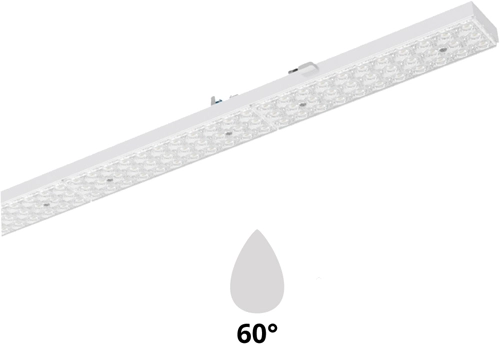 PRX LED-Lichtlijnmodule compatible met bestaande draagrails van lichtlijnsystemen van Signify Philips Maxos G1, TTX400, TTX200, Veko, Norton T5/T8, Lumis, Trilux E-Line T8E, T5E, Regiolux SMT, SDT, Siteco, Zumtobel ZX2. Geschikt voor gebruik in HACCP, IFS versie 6 en/of BRC Global Standard Food versie 7 gecertificeerde bedrijven (DIN 10500). Gereedschapsloos aan het draagprofiel te bevestigen met behulp van roestvrijstalen kliksluitingen. Met mechanische beveiliging tegen verkeerde montage. Bij correcte montage vormt het LED Armatuur één geheel met de draagrail. Het optisch systeem bestaat uit een lenzenoptiek van PMMA met drie op elkaar afgestemde, lichttechnisch werkzame zones, wat een gelijkmatige lichtverdeling en homogene lichtuitstraling garandeert. Stralingskarakteristiek: Zeer brede bundel 120° (Very Wide Beam/VWB), Breedstralend 90° (Wide Beam/WB), Middelbrede Bundel 60° (Middle Beam/ MB), Smalle bundel 30° (Narrow Beam/NB). Aanbevolen installatiehoogte: 4 – 12m. Armatuurfamilie standaard voorzien longlife 100.000 uur drivers met dipswitch schakelaar, waarmee 4-in-1 wattages en lichtstromen ingesteld kan worden (multilumen). Armatuurlichtstroom tussen 4.880 tot 9.150lm, aansluitvermogen 32,00W tot 60,00W. Verkrijgbaar in lichtkleur 3000K (warm wit), 4000K (neutraal wit), 5000K (koud wit) of 6500K (daglicht). Maximum efficacy 153 lm/w. Algemene kleurweergave-index (CRI) Ra >80. Zeer stabiele binning MacAdam Ellipse =2 (SDCM). Gemiddelde levensduur L90(tq 25°C) = >50.000, L80(tq 25°C) = >100.000 volgens TM-21 extrapolatie, In-SITU temperatuurtest (ISTMT). Toelaatbare omgevingstemperatuur (ta): -25°C ~ + 50°C. Beschermklasse (EN 61140): I. Beschermklasse Ingress Protection (EN 60529): IP40, slagvastheid IEC 62262: IK02. Beoordeling van de gevaren van blauw licht (EN 62471): RG1 , geen risico. Gloeidraadtest conform IEC 606952-11: 650°C. Met elektronische transformator, origineel aansluitklem/ connector per merk. Versies met DALI, en voorzieningen voor de aansluiting van lichtmanagement systemen op basis van DALI. Noodverlichting manuele of autotest, continue, niet-continue, noodverlichting als standbyverlichting. Armaturen voldoen aan de fundamentele eisen van de van toepassing zijnde EU-richtlijnen en productveiligheidswet, zoals EMC, LvD en RoHs. Armaturen zijn voorzien van een CE-markering en ENEC-keuring.