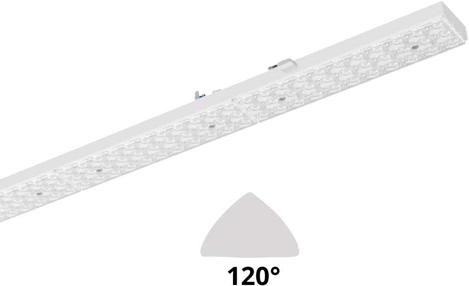 PRX LED-Lichtlijnmodule compatible met bestaande draagrails van lichtlijnsystemen van Signify Philips Maxos G1, TTX400, TTX200, Veko, Norton T5/T8, Lumis, Trilux E-Line T8E, T5E, Regiolux SMT, SDT, Siteco, Zumtobel ZX2. Geschikt voor gebruik in HACCP, IFS versie 6 en/of BRC Global Standard Food versie 7 gecertificeerde bedrijven (DIN 10500). Gereedschapsloos aan het draagprofiel te bevestigen met behulp van roestvrijstalen kliksluitingen. Met mechanische beveiliging tegen verkeerde montage. Bij correcte montage vormt het LED Armatuur één geheel met de draagrail. Het optisch systeem bestaat uit een lenzenoptiek van PMMA met drie op elkaar afgestemde, lichttechnisch werkzame zones, wat een gelijkmatige lichtverdeling en homogene lichtuitstraling garandeert. Stralingskarakteristiek: Zeer brede bundel 120° (Very Wide Beam/VWB), Breedstralend 90° (Wide Beam/WB), Middelbrede Bundel 60° (Middle Beam/ MB), Smalle bundel 30° (Narrow Beam/NB). Aanbevolen installatiehoogte: 4 – 12m. Armatuurfamilie standaard voorzien longlife 100.000 uur drivers met dipswitch schakelaar, waarmee 4-in-1 wattages en lichtstromen ingesteld kan worden (multilumen). Armatuurlichtstroom tussen 4.880 tot 9.150lm, aansluitvermogen 32,00W tot 60,00W. Verkrijgbaar in lichtkleur 3000K (warm wit), 4000K (neutraal wit), 5000K (koud wit) of 6500K (daglicht). Maximum efficacy 153 lm/w. Algemene kleurweergave-index (CRI) Ra >80. Zeer stabiele binning MacAdam Ellipse =2 (SDCM). Gemiddelde levensduur L90(tq 25°C) = >50.000, L80(tq 25°C) = >100.000 volgens TM-21 extrapolatie, In-SITU temperatuurtest (ISTMT). Toelaatbare omgevingstemperatuur (ta): -25°C ~ + 50°C. Beschermklasse (EN 61140): I. Beschermklasse Ingress Protection (EN 60529): IP40, slagvastheid IEC 62262: IK02. Beoordeling van de gevaren van blauw licht (EN 62471): RG1 , geen risico. Gloeidraadtest conform IEC 606952-11: 650°C. Met elektronische transformator, origineel aansluitklem/ connector per merk. Versies met DALI, en voorzieningen voor de aansluiting van lichtmanagement systemen op basis van DALI. Noodverlichting manuele of autotest, continue, niet-continue, noodverlichting als standbyverlichting. Armaturen voldoen aan de fundamentele eisen van de van toepassing zijnde EU-richtlijnen en productveiligheidswet, zoals EMC, LvD en RoHs. Armaturen zijn voorzien van een CE-markering en ENEC-keuring.