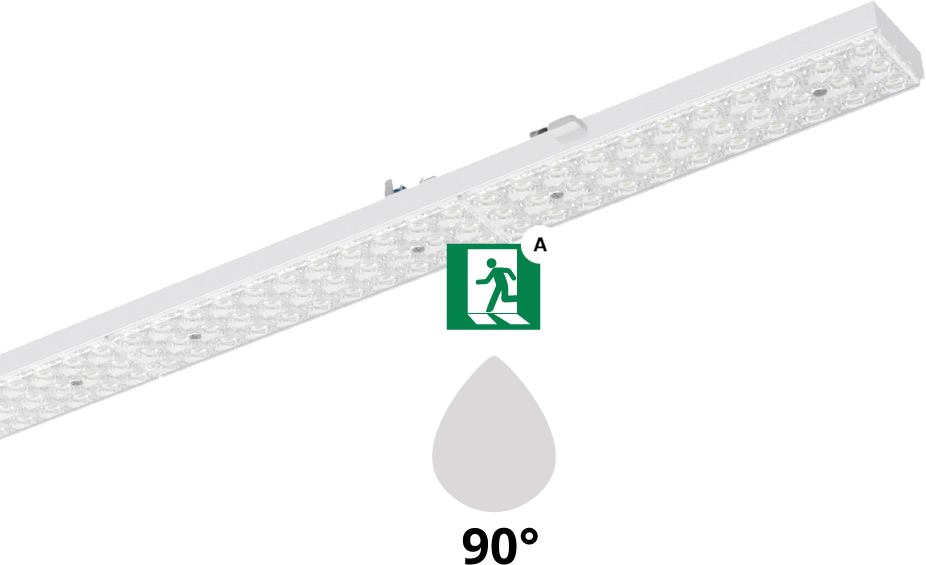 LED Lichtlijnsysteem geschikt voor toepassing in bedrijfshallen, productieruimten, fabriekshallen en winkels. Geschikt voor gebruik in HACCP, IFS versie 6 en/of BRC Global Standard Food versie 7 gecertificeerde bedrijven (DIN 10500). Aluminium draagprofielen beschikbaar in 3 lengtes: 4584mm (3 units), 3056mm (2 units) en 1528mm (1 unit) en standaard voorzien van 7x2,5mm2 doorvoerbedrading. Gereedschapsloos aan het draagprofiel te bevestigen met behulp van roestvrijstalen kliksluitingen. Het optisch systeem bestaat uit een lenzenoptiek van PMMA met drie op elkaar afgestemde, lichttechnisch werkzame zones, wat een gelijkmatige lichtverdeling en homogene lichtuitstraling garandeert. Stralingskarakteristiek: Zeer brede bundel 120 (Very Wide Beam/VWB), Breedstralend 90 (Wide Beam/WB), Middelbrede Bundel 60 (Middle Beam/ MB), Smalle bundel 30 (Narrow beam /NB). Aanbevolen installatiehoogte: 4 12m. Armatuurfamilie standaard voorzien longlife 100.000 uur flikkervrije drivers met dipswitch schakelaar, waarmee 4-in-1 wattages en lichtstromen ingesteld kan worden (multilumen). Armatuurlichtstroom tussen 4.880 tot 9.150lm, aansluitvermogen 32,00W tot 60,00W. Verkrijgbaar in lichtkleur 3000K (warm wit), 4000K (neutraal wit), 5000K (koud wit) of 6500K (daglicht). Maximum efficacy 153 lm/w. Algemene kleurweergaveindex (CRI) Ra >80. Zeer stabiele binning MacAdam Ellipse =3 (SDCM). Gemiddelde levensduur L90(tq 25C) = >50.000, L80(tq 25C) = >100.000 volgens TM-21 extrapolatie, In-SITU temperatuurtest (ISTMT). Toelaatbare omgevingstemperatuur (ta): -25C ~ + 50C. Beschermklasse (EN 61140): I. Beschermklasse Ingress Protection (EN 60529): IP40, slagvastheid IEC 62262: IK02. Beoordeling van de gevaren van blauw licht (EN 62471): RG0 , geen risico. Gloeidraadtest conform IEC 60695-2-11: 850C. Versies met DALI, en voorzieningen voor de aansluiting van lichtmanagement systemen op basis van DALI. Noodverlichting manuele of autotest, continue, nietcontinue, noodverlichting als standby-verlichting. Armaturen voldoen aan de fundamentele eisen van de van toepassing zijnde EU-richtlijnen en productveiligheidswet, zoals EMC, LvD en RoHs. Armaturen zijn voorzien van een CE-markering en ENEC-keuring.