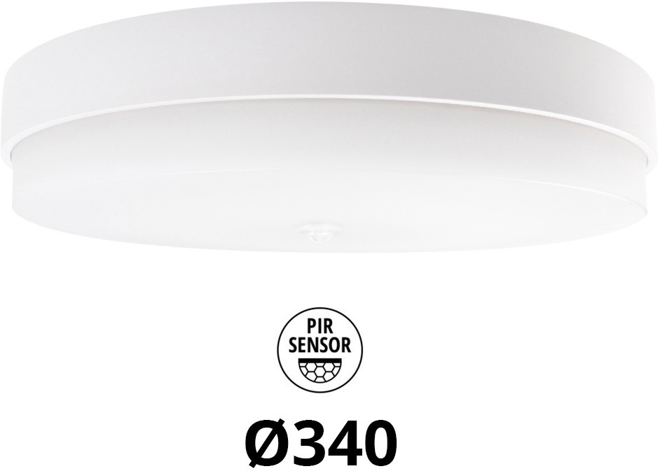 Pragmalux LED Plafonniere / Wandarmatuur Dura-M Wit 340 IP64 IK10 8-18W 950-2300lm 3000K-3500K-4000K 3-CCT + PIR sensor