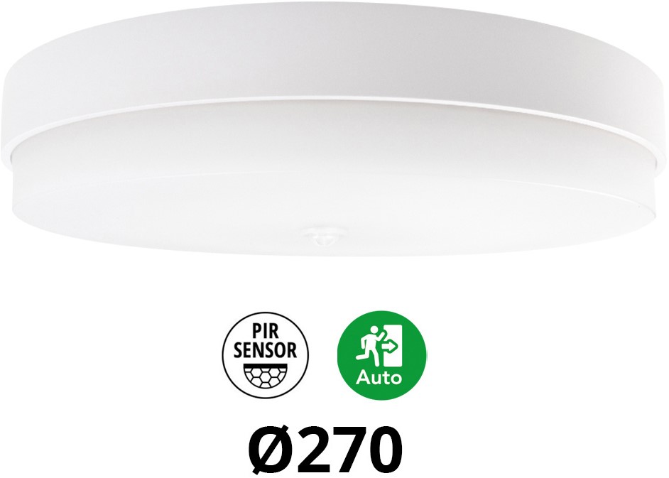 Pragmalux LED Plafonniere / Wandarmatuur Dura-S Wit 270 IP64 IK10 4-9W 375-1000lm 2200K-2700K 2-CCT + PIR sensor + noodmodule 1uur autotest