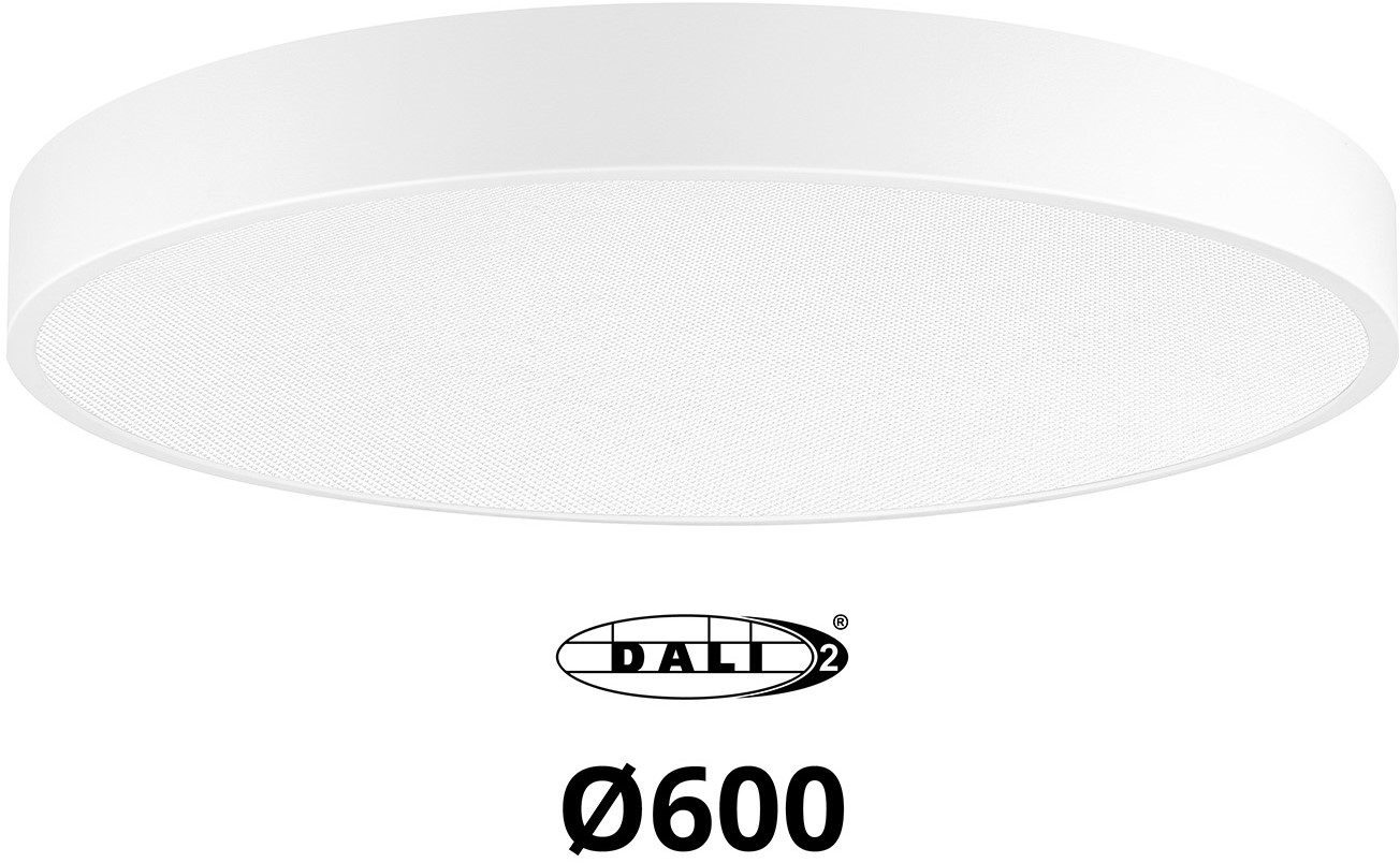 Opbouw-, pendelarmatuur met micro prismatische en/of opalen afscherming. Met aluminium behuizing wit (RAL9003), zwart (RAL9005) of grijs (RAL9006). Verkrijgbaar in diameters (mm) Ø320, 380, 450, 600, 750, 900, 1200. Lage lichthinder UGR<19, geschikt voor beeldschermwerkplekken overeenkomstig met EN12464-1:2021. 2-in-1 Directe (down) 80% en indirecte (up) 20% lichtuitstraling in te regelen via schakelaar. 90 microprisma, 120 opaal, harmonieus lichteffect door gelijkmatige lichtuitstraling. Armatuurlichtstroom varieert van 1.265 tot 17.000 lumen. Aansluitvermogen van 14 160W afhankelijk van gekozen driver. Versies met instelbare lumenstroom (Multi lumen). Standaard voorzien van 3 kleurtemperaturen (CCT) 3000K (warm wit), 3500K (warm wit) en 4000K (neutraal wit) schakelbaar middels schuifschakelaar op armatuur. Algemene kleurweergave-index (CRI) Ra >90, R9 >50. Zeer stabiele binning MacAdam Ellipse < 3 (SDCM). Gemiddelde levensduur L80(tq 25C) = 150.000, L90 (tq 25C) = 100.000, volgens TM-21 extrapolatie, In-SITU temperatuurtest (ISTMT). Toelaatbare omgevingstemperatuur (ta): -25C ~ + 40C, incl. noodverlichting -5C ~ + 30C Beschermklasse (EN61140): II. Beschermklasse Ingress Protection (EN 60529): IP44, slagvastheid IEC 62262: IK08. Gloeidraadtest conform IEC 60695-2-11: 650C. Versies met 3-aderige aansluitklemmen voor bedrading van 0,75 tot 2,5mm2 voor aansluiting en doorlussen (loop-in-loop-out) van voeding. Versies standaard met DALI-2, Push&dim, corridor functie, variabele lumenstroom (dipswitch) en Armaturen voldoen aan de fundamentele eisen van de van toepassing zijnde EU-richtlijnen en productveiligheidswet, zoals EMC, LvD en RoHs. Armaturen zijn voorzien van een CE en ENEC markering
