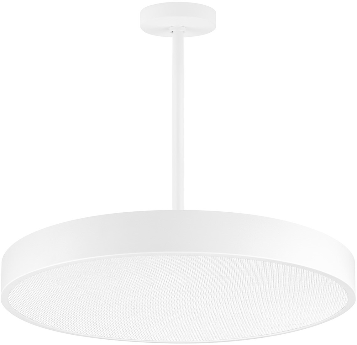 Opbouw-, pendelarmatuur met micro prismatische en/of opalen afscherming. Met aluminium behuizing wit (RAL9003), zwart (RAL9005) of grijs (RAL9006). Verkrijgbaar in diameters (mm) Ø320, 380, 450, 600, 750, 900, 1200. Lage lichthinder UGR<19, geschikt voor beeldschermwerkplekken overeenkomstig met EN12464-1:2021. 2-in-1 Directe (down) 80% en indirecte (up) 20% lichtuitstraling in te regelen via schakelaar. 90 microprisma, 120 opaal, harmonieus lichteffect door gelijkmatige lichtuitstraling. Armatuurlichtstroom varieert van 1.265 tot 17.000 lumen. Aansluitvermogen van 14 160W afhankelijk van gekozen driver. Versies met instelbare lumenstroom (Multi lumen). Standaard voorzien van 3 kleurtemperaturen (CCT) 3000K (warm wit), 3500K (warm wit) en 4000K (neutraal wit) schakelbaar middels schuifschakelaar op armatuur. Algemene kleurweergave-index (CRI) Ra >90, R9 >50. Zeer stabiele binning MacAdam Ellipse < 3 (SDCM). Gemiddelde levensduur L80(tq 25C) = 150.000, L90 (tq 25C) = 100.000, volgens TM-21 extrapolatie, In-SITU temperatuurtest (ISTMT). Toelaatbare omgevingstemperatuur (ta): -25C ~ + 40C, incl. noodverlichting -5C ~ + 30C Beschermklasse (EN61140): II. Beschermklasse Ingress Protection (EN 60529): IP44, slagvastheid IEC 62262: IK08. Gloeidraadtest conform IEC 60695-2-11: 650C. Versies met 3-aderige aansluitklemmen voor bedrading van 0,75 tot 2,5mm2 voor aansluiting en doorlussen (loop-in-loop-out) van voeding. Versies standaard met DALI-2, Push&dim, corridor functie, variabele lumenstroom (dipswitch) en Armaturen voldoen aan de fundamentele eisen van de van toepassing zijnde EU-richtlijnen en productveiligheidswet, zoals EMC, LvD en RoHs. Armaturen zijn voorzien van een CE en ENEC markering