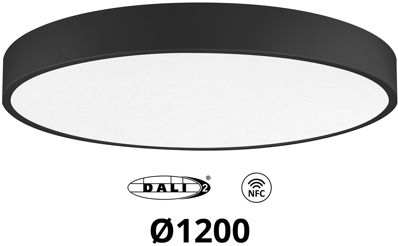 Opbouw-, pendelarmatuur met micro prismatische en/of opalen afscherming. Met aluminium behuizing wit (RAL9003), zwart (RAL9005) of grijs (RAL9006). Verkrijgbaar in diameters (mm) Ø320, 380, 450, 600, 750, 900, 1200. Lage lichthinder UGR<19, geschikt voor beeldschermwerkplekken overeenkomstig met EN12464-1:2021. 2-in-1 Directe (down) 80% en indirecte (up) 20% lichtuitstraling in te regelen via schakelaar. 90 microprisma, 120 opaal, harmonieus lichteffect door gelijkmatige lichtuitstraling. Armatuurlichtstroom varieert van 1.265 tot 17.000 lumen. Aansluitvermogen van 14 160W afhankelijk van gekozen driver. Versies met instelbare lumenstroom (Multi lumen). Standaard voorzien van 3 kleurtemperaturen (CCT) 3000K (warm wit), 3500K (warm wit) en 4000K (neutraal wit) schakelbaar middels schuifschakelaar op armatuur. Algemene kleurweergave-index (CRI) Ra >90, R9 >50. Zeer stabiele binning MacAdam Ellipse < 3 (SDCM). Gemiddelde levensduur L80(tq 25C) = 150.000, L90 (tq 25C) = 100.000, volgens TM-21 extrapolatie, In-SITU temperatuurtest (ISTMT). Toelaatbare omgevingstemperatuur (ta): -25C ~ + 40C, incl. noodverlichting -5C ~ + 30C Beschermklasse (EN61140): II. Beschermklasse Ingress Protection (EN 60529): IP44, slagvastheid IEC 62262: IK08. Gloeidraadtest conform IEC 60695-2-11: 650C. Versies met 3-aderige aansluitklemmen voor bedrading van 0,75 tot 2,5mm2 voor aansluiting en doorlussen (loop-in-loop-out) van voeding. Versies standaard met DALI-2, Push&dim, corridor functie, variabele lumenstroom (dipswitch) en Armaturen voldoen aan de fundamentele eisen van de van toepassing zijnde EU-richtlijnen en productveiligheidswet, zoals EMC, LvD en RoHs. Armaturen zijn voorzien van een CE en ENEC markering