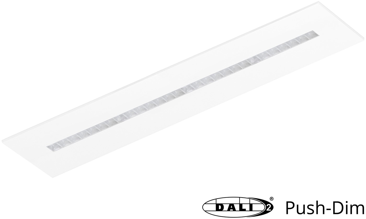 Pragmalux LED Bandrasterarmatuur Optic transparant reflector 30x150cm 36W 4400-4800lm 3000K-3500K-4000K 3CCT CRI>90 UGR<16 wit RAL9003 + Philips DALI driver + plenum