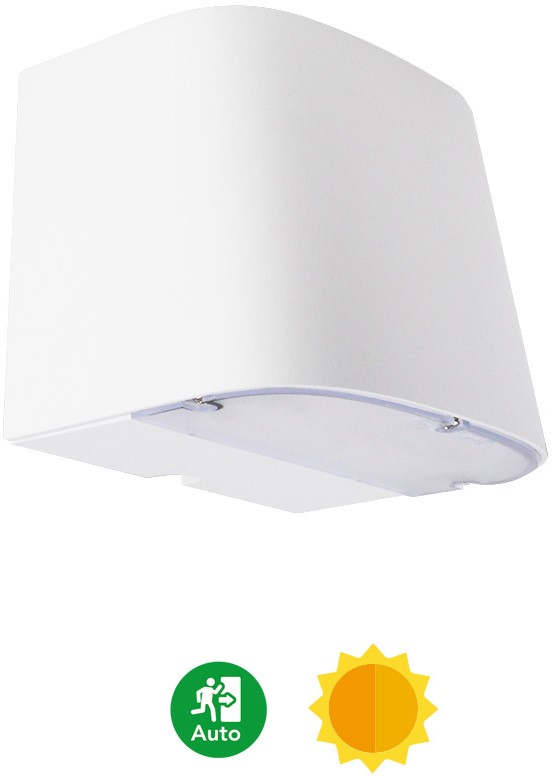 LED gevelarmatuur voor buiten en binnen toepassingen. Armatuurbehuizing uit spuitgietaluminium, met geïntegreerde koelribben. Behuizing behandeld met poedercoating, C4 klasse NEN-EN-ISO 12944-2. Verkrijgbaar in grafietzwart RAL9011 en wit RAL9003. Diffuser van UV-gestabiliseerd polycarbonaat. Lichtverdeling (2-in-1), st. up 30 /down 120, of downlight 120 met aansluitvermogen 7,00W down, 3,00W up of 7W down met lichtstroom 800-840lm down, 400-420lm up, of 800-840lm down. Lichtkleur 2-in-1 (2-CCT) met schakelaar voor 3000K (warmwit) en 4000K (neutraal wit). Maximale efficiëntie tot 126 lm/w. Algemene kleurweergave-index (CRI) Ra >80. Zeer stabiele binning MacAdam Ellipse 3 (SDCM). Gemiddelde levensduur L90(tq 25C) = >100.000, L80(tq 25C) = >150.000 volgens TM-21 extrapolatie, In-SITU temperatuurtest (ISTMT). Toelaatbare omgevingstemperatuur (ta): -25C ~ + 50C, nood versie: -10C ~ + 40C. Beschermklasse (EN 61140): I. Beschermklasse Ingress Protection (EN 60529): IP65, slagvastheid IEC 62262: IK10. Beoordeling van de gevaren van blauw licht (EN 62471): RG1. Gloeidraadtest conform IEC 60695-2-11: 650C. Met elektronische transformator, 3-aderige aansluitklem voor bedrading tot 2,5mm2 voor aansluiting van voeding onder trekontlasting. Standaard aan/uit, optioneel fase of DALI-2 dimbaar. Versies met daglichtsensor en/of noodverlichting en voorzieningen voor de aansluiting van lichtmanagement systemen op basis van DALI-2. Onderdelen modulair te vervangen. 5 jaar fabrieksgarantie op armatuur, 3 jaar op nood omvormer en batterijen. Armaturen voldoen aan de fundamentele eisen van de van toepassing zijnde EU-richtlijnen en productveiligheidswet, zoals EMC, LvD en RoHs. Armaturen zijn voorzien van een CE-markering.