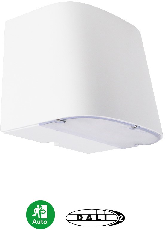 LED gevelarmatuur voor buiten en binnen toepassingen. Armatuurbehuizing uit spuitgietaluminium, met geïntegreerde koelribben. Behuizing behandeld met poedercoating, C4 klasse NEN-EN-ISO 12944-2. Verkrijgbaar in grafietzwart RAL9011 en wit RAL9003. Diffuser van UV-gestabiliseerd polycarbonaat. Lichtverdeling (2-in-1), st. up 30 /down 120, of downlight 120 met aansluitvermogen 7,00W down, 3,00W up of 7W down met lichtstroom 800-840lm down, 400-420lm up, of 800-840lm down. Lichtkleur 2-in-1 (2-CCT) met schakelaar voor 3000K (warmwit) en 4000K (neutraal wit). Maximale efficiëntie tot 126 lm/w. Algemene kleurweergave-index (CRI) Ra >80. Zeer stabiele binning MacAdam Ellipse 3 (SDCM). Gemiddelde levensduur L90(tq 25C) = >100.000, L80(tq 25C) = >150.000 volgens TM-21 extrapolatie, In-SITU temperatuurtest (ISTMT). Toelaatbare omgevingstemperatuur (ta): -25C ~ + 50C, nood versie: -10C ~ + 40C. Beschermklasse (EN 61140): I. Beschermklasse Ingress Protection (EN 60529): IP65, slagvastheid IEC 62262: IK10. Beoordeling van de gevaren van blauw licht (EN 62471): RG1. Gloeidraadtest conform IEC 60695-2-11: 650C. Met elektronische transformator, 3-aderige aansluitklem voor bedrading tot 2,5mm2 voor aansluiting van voeding onder trekontlasting. Standaard aan/uit, optioneel fase of DALI-2 dimbaar. Versies met daglichtsensor en/of noodverlichting en voorzieningen voor de aansluiting van lichtmanagement systemen op basis van DALI-2. Onderdelen modulair te vervangen. 5 jaar fabrieksgarantie op armatuur, 3 jaar op nood omvormer en batterijen. Armaturen voldoen aan de fundamentele eisen van de van toepassing zijnde EU-richtlijnen en productveiligheidswet, zoals EMC, LvD en RoHs. Armaturen zijn voorzien van een CE-markering.
