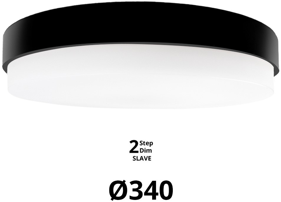 Pragmalux LED Plafonnière / Wandarmatuur Dura-M Zwart Ø340 IP64 IK10 8-18W 750-2075lm 2200K-2700K 2-CCT 2-step dim (100-10%) slave = geen sensor