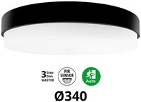 Pragmalux LED Plafonnière / Wandarmatuur Dura-M Zwart Ø340 IP64 IK10 8-18W 950-2300lm 3000K-3500K-4000K 3-CCT 3-step dim (100-10%) master + PIR Sensor & noodmodule 1uur zelftest