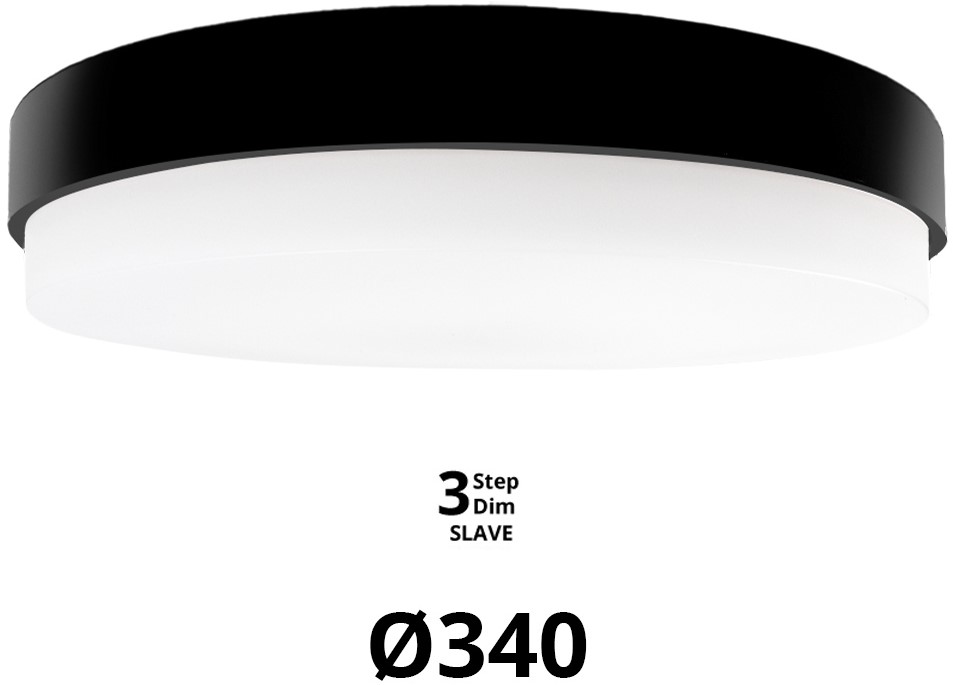Pragmalux LED Plafonnière / Wandarmatuur Dura-M Zwart Ø340 IP64 IK10 8-18W 950-2300lm 3000K-3500K-4000K 3-CCT 3-step dim (100-10%) slave = geen sensor