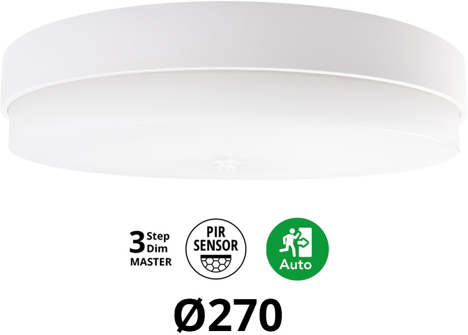 Pragmalux LED Plafonnière / Wandarmatuur Dura-S Wit Ø270 IP64 IK10 4-9W 450-1100lm 3000K-3500K-4000K 3-CCT 3-step dim (100-10%) master + PIR Sensor & noodmodule 1uur zelftest