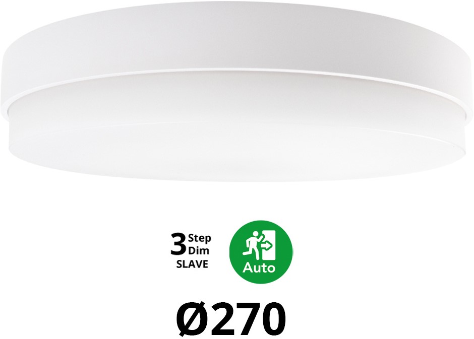 Pragmalux LED Plafonnière / Wandarmatuur Dura-S Wit Ø270 IP64 IK10 4-9W 450-1100lm 3000K-3500K-4000K 3-CCT 3-step dim (100-10%) slave = geen sensor & noodmodule 1uur zelftest