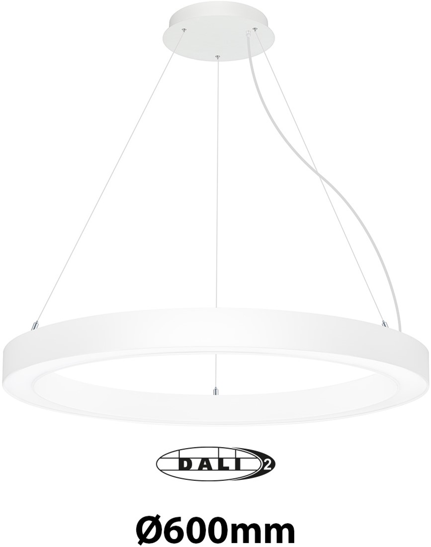 Pragmalux LED Pendelarmatuur Circo Ø600mm Prisma direct/indirect 28-56W 2650-5600lm 3CCT 3000-3500-4000K CRI90 UGR<19 Wit - DALI+ pendelset 3m