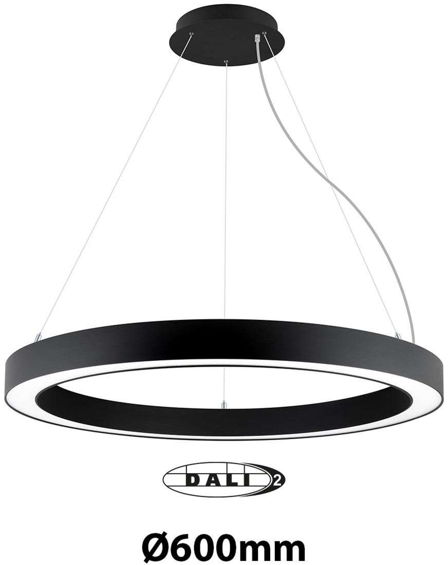 Pragmalux LED Pendelarmatuur Circo Ø600mm Prisma direct/indirect 28-56W 2650-5600lm 3CCT 3000-3500-4000K CRI90 UGR<19 Zwart - DALI+ pendelset 3m