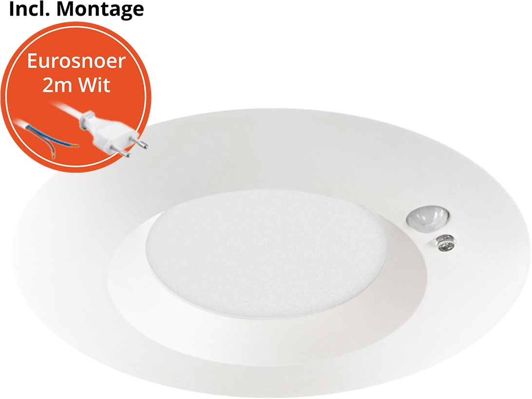 Pragmalux LED Downlight Mondial PIR IP54 opaal wit 13-18W 1400-2100lm 3-CCT 100D BØ190 - GØ150-165 +LED Driver incl. eurosnoer 2m wit