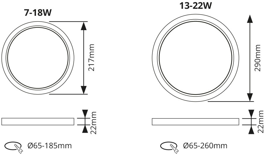 Inbouwdiameter65 - 185 Millimeter