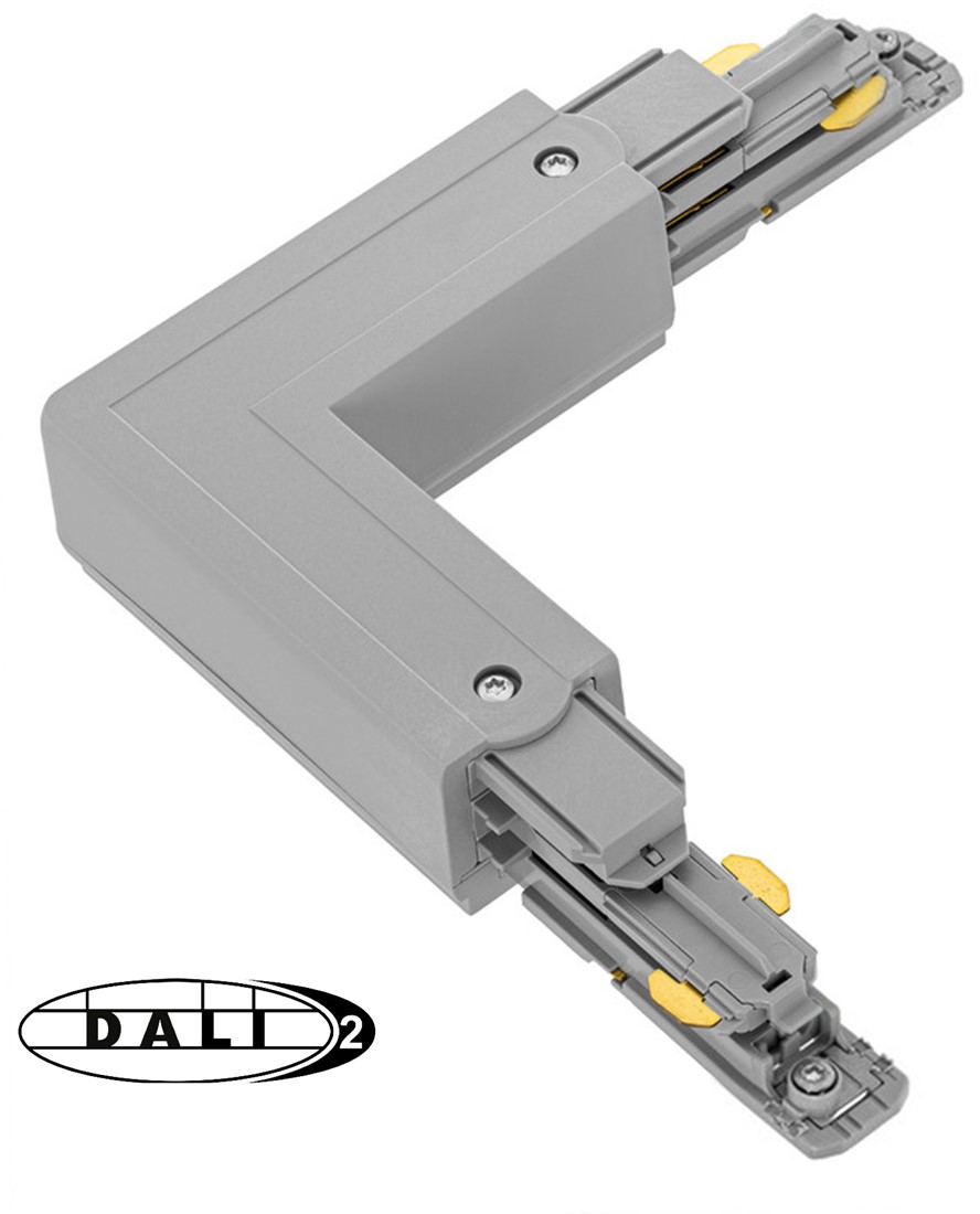 PRX 3-Fase DALI Rail 90° Bocht Links aarde buitenzijde Grijs