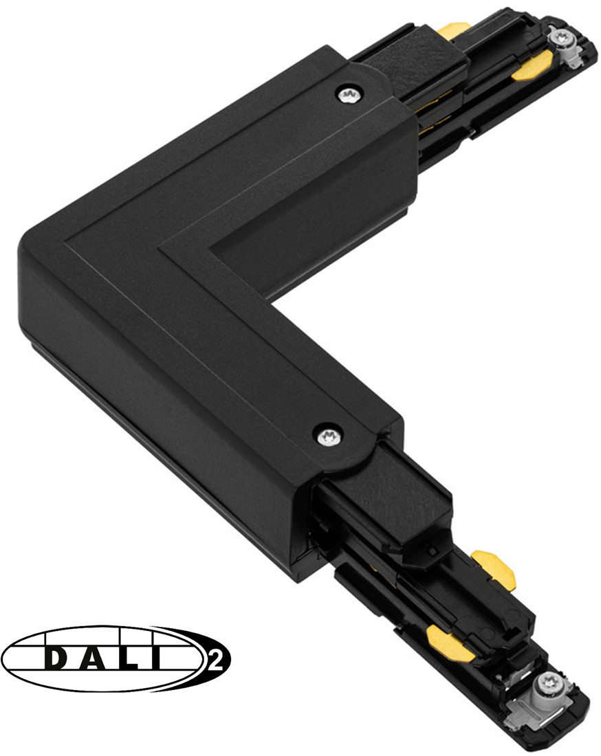 PRX 3-Fase DALI Rail 90° Bocht Rechts aarde binnenzijde Zwart
