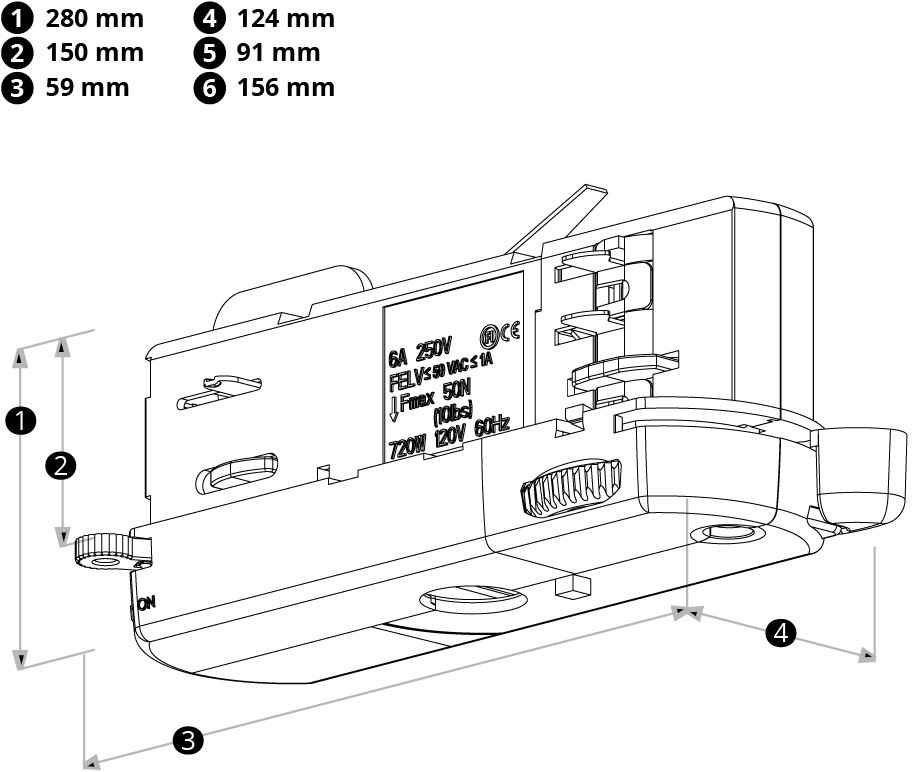 PRX 3-Fase DALI Rail Adapter 70mm Wit