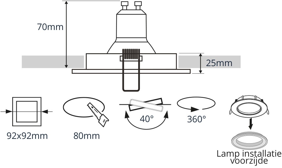 • Inclusief springveren en GU10 fitting