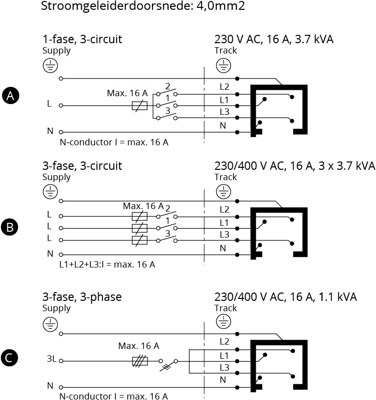 PRX 3-fase Rails (L1-L2-L3-N-E)