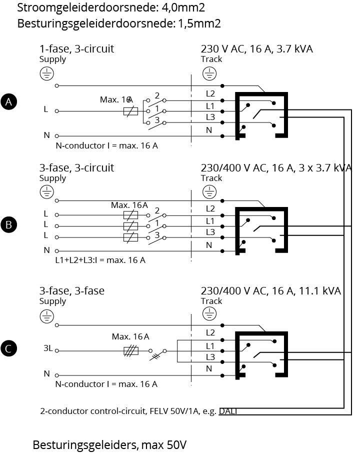 PRX 3-fase Rails DALI (L1-L2-L3-N-E) (DA+/DA-)