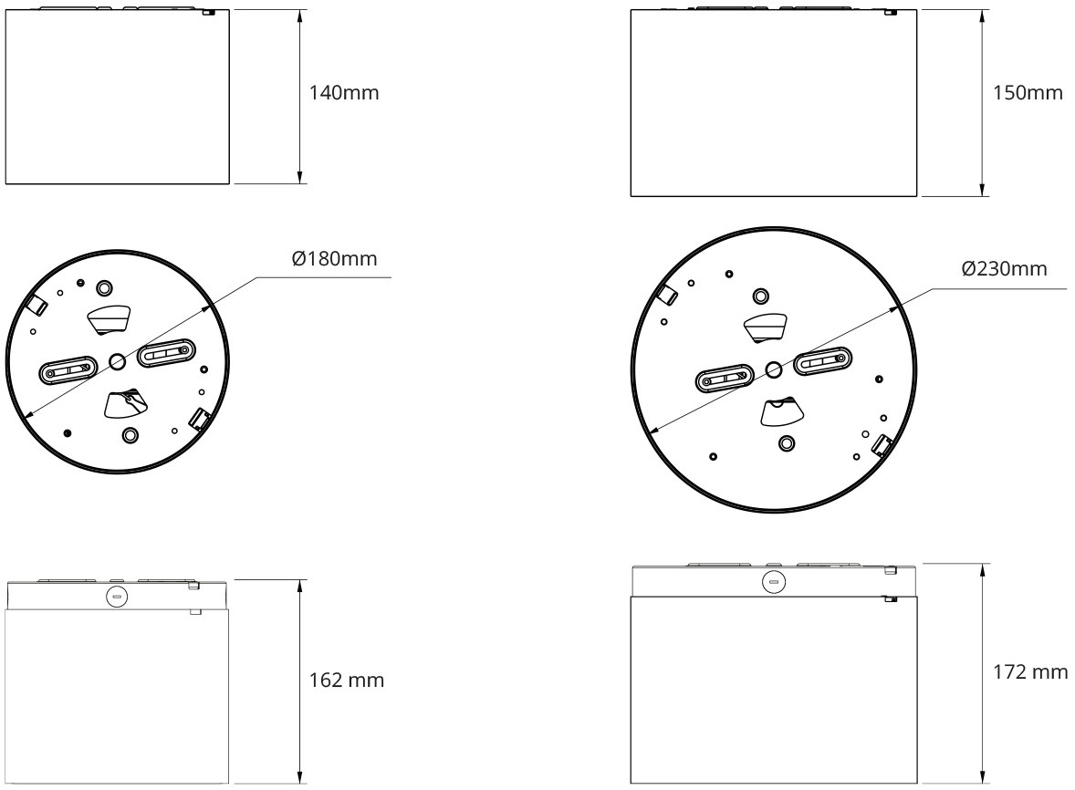 • Instelbaar vermogen en lumenbereik (Ø180: 725–2450 lm of Ø230: 1700–3200 lm)