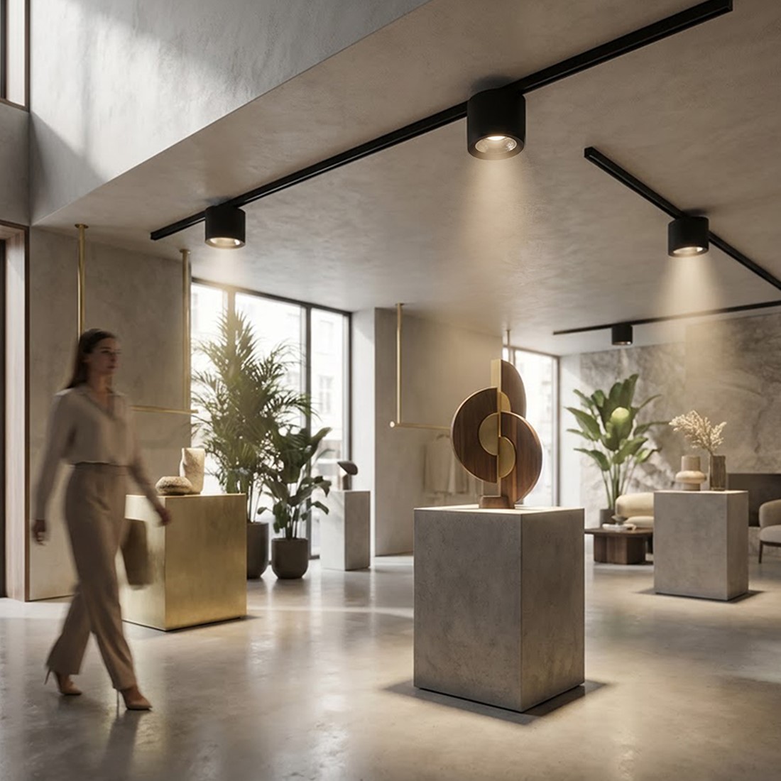 De Pragmalux Mondial Track is een professionele LED-downlight voor 3-fase railsystemen, ontworpen voor optimale flexibiliteit in retail, showrooms en projectomgevingen. Dankzij instelbare lumenoutput en 3-CCT (3000K / 3500K / 4000K) kan de lichtkleur eenvoudig worden afgestemd op het product of de sfeer. De Mondial Track is verkrijgbaar met facet- of hoogglansreflector (UGR < 19) en biedt dankzij CRI90+, SDCM < 2 en een lange levensduur van L90B10 100.000 uur hoogwaardige, consistente verlichting. De IP54-classificatie maakt hem geschikt voor plaatsen waar extra bescherming tegen stof en spatwater gewenst is.