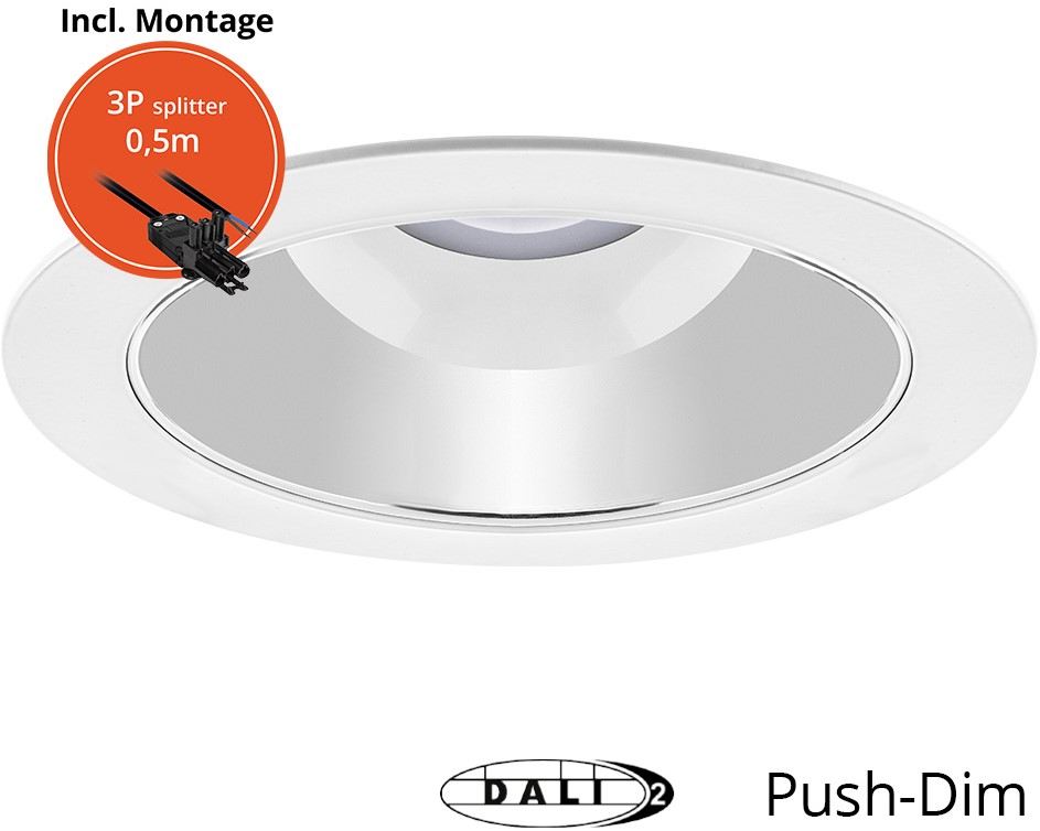 Pragmalux LED Downlight Spectre SR IP54 20W 3000K-5700K 3-CCT 2200-2300lm + TCI DALI Driver incl. 3P Aansluitsnoer en splitter en trekontlasting, 1 in 2 uit (2x26W)