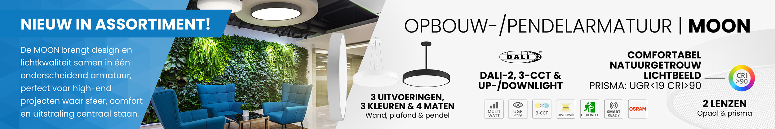 Pragmalux LED Opbouw-/pendelarmatuur Moon IP44 Ø1200mm Prisma direct/indirect max.160W 18950-20100lm 3CCT 3000-3500-4000K CRI90 Wit - DALI NFC